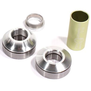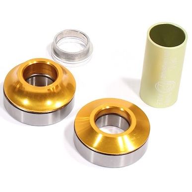 Bearings. Coloured cone spacers and spacer to fit Mid BB frames. Also fits Profile cups to work as a replacement set of bearings for US BB. Fits 19mm crank axles.
