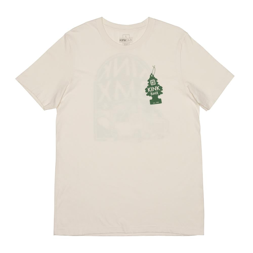 It pairs a comfortable super soft cotton fabric with a regular fit kept in place with a ribbed crewneck collar. A custom Kink Road Warrior graphic gets screen printed across the back with an air freshener style graphic on the chest to finish.