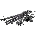 Con un dobleConificado Diámetro Gauge 14 (2.0mm) radio (2.0/1.8/2.0 mm) el Pro El kit de radios es más ligero y más fuerte que el tradicional recto Diámetro Gauge 14 (2.0mm) radios. Esto es posible mediante el uso de un radio que es 14 g en los extremos pero 15 g en el medio; Esta combinación hace que una relación de fuerza / peso excepcional. Además incluido es liviano Negro anodizado Aluminio pezones para reducir aún más el peso rotacional.
