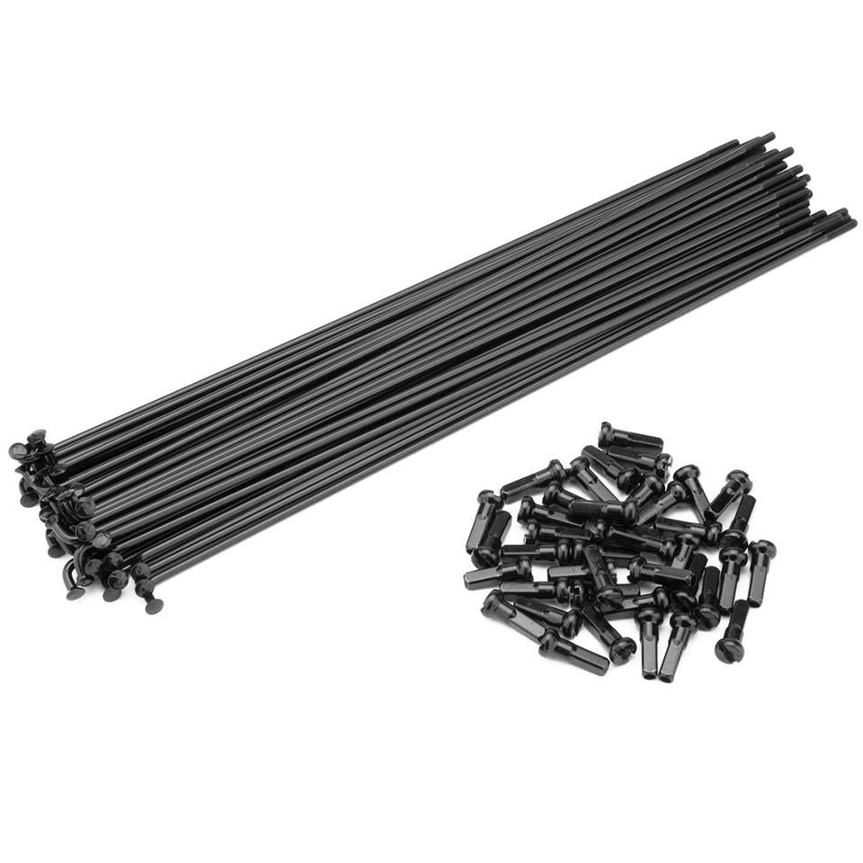 Conveniente Gauge dritto Acciaio raggi. Include 40 Nero raggi e 40 Nero Ottone capezzoli. Disponibile in varie lunghezze.